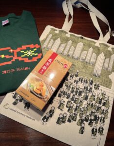 We were met by some of the wonderful NSO team, including Rina and Arthur, plus former colleague Iris, who welcomed us with presents, including traditional Taiwanese pineapple cake from Iris, and a tote bag and picture from the NSO featuring the orchestra and the office team illustrated as cats!