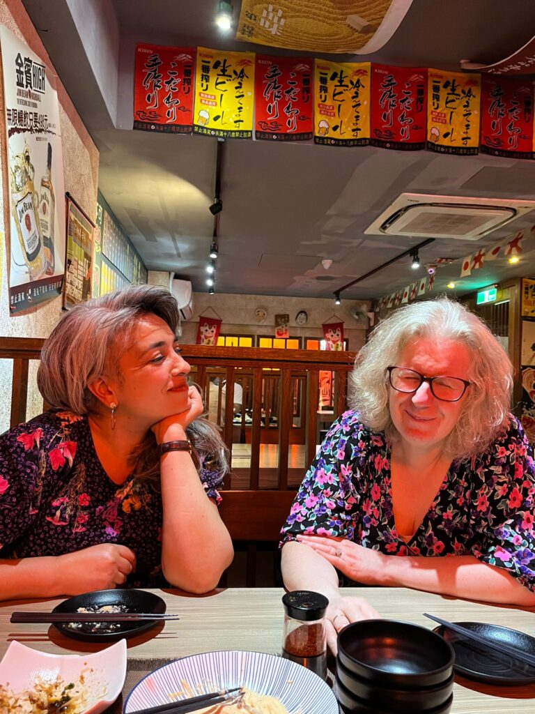 We had done virtually all the planning for the workshops beforehand, though, mirroring the project, nothing is set in stone – so that we can adapt to the needs of the workshop participants. Our aim, though, was, in the short time available, to give a taste of the ethos involved and share the effect it has on participants. That was exciting because however good training is online, there is nothing like being there in the moment, sharing together. We shared some tea and Taiwanese cream puff biscuits (like profiteroles filled with marshmallow), before travelling by car to the newly opened community centre where the actual elder Music in Mind workshops were to be held. Again, pristine condition, since we were going to be the first organisation to use the space, and, as is tradition, we took off our shoes at the door into the room. Just as well that my musical socks didn’t have holes in… So, anticipation rising for the first day of training, as we ventured back to the hotel and explored the big department store down the road, Sogo, to eat in its food court that evening.