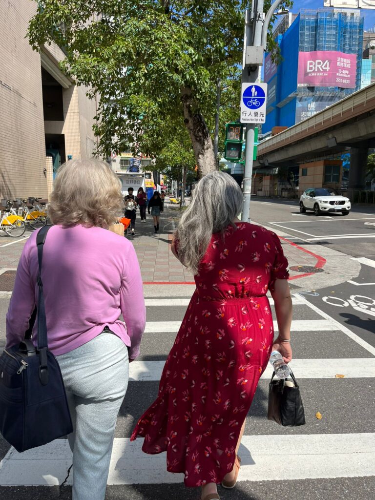 So, we were now officially finished, but the three of us had collectively decided to stay for two more nights, since it was a long way to come and not experience a little more of the surrounding area. We ended up walking over 11 miles including to the huge Tamsui River (although no local, either when checking the route at the hotel, or whilst walking en route, could believe we actually wanted to walk!). But the walking was the best bit – so much that was different to see: temples, incense shrines, popular street food stalls in a tiny alleyway, cyclists everywhere and multiple ‘countdown’-style pedestrian crossings. Richard from the British Council had recommended walking around the old town, where Amina got very excited about the haberdashery section!